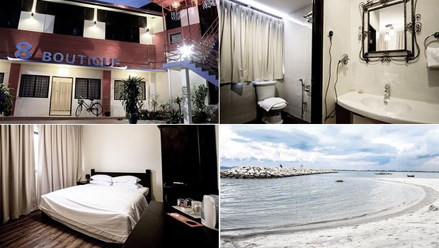 8 Boutique’s price range is between RM80 and RM150; awesome budget hotel. You can book it directly through the hotel. Beside the hotel are a Chinese Temple and a must-try and cheap seafood restaurant. In front of this hotel you will find a beautiful beach. Straits Quay is only 2 minute drive from 8 Boutique. Book the sea view room and enjoy remarkable scenery, especially in the nights! This place suites family, backpackers or couples.